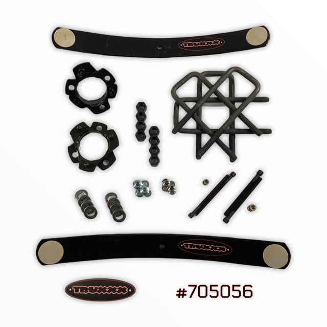 Each kit contains front strut spacers and rear add-a-leafs ( the kit comes with the stock size 1/2″ ubolts but we can upgrade you to the best 9/16 American made U-bolts we can buy ~ simply add ‘ UPGRADE TO 9/16″ UBOLTS’ in the order notes) we fabricate all of our parts using the highest quality North American steel we can buy, we include all the all the required hardware in 8.8 & 10.9 grade, we have detailed instructions and complete alignment specs.